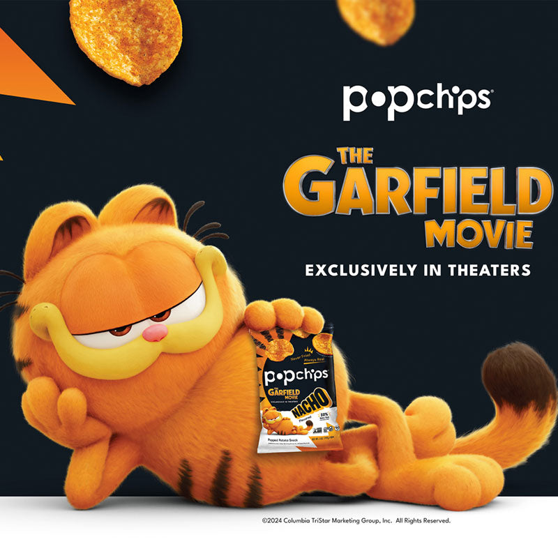 The cat's outta the bag — these purrfectly cheesy Nacho Popchips are Garfield's favorite catsnackin' potato chip.